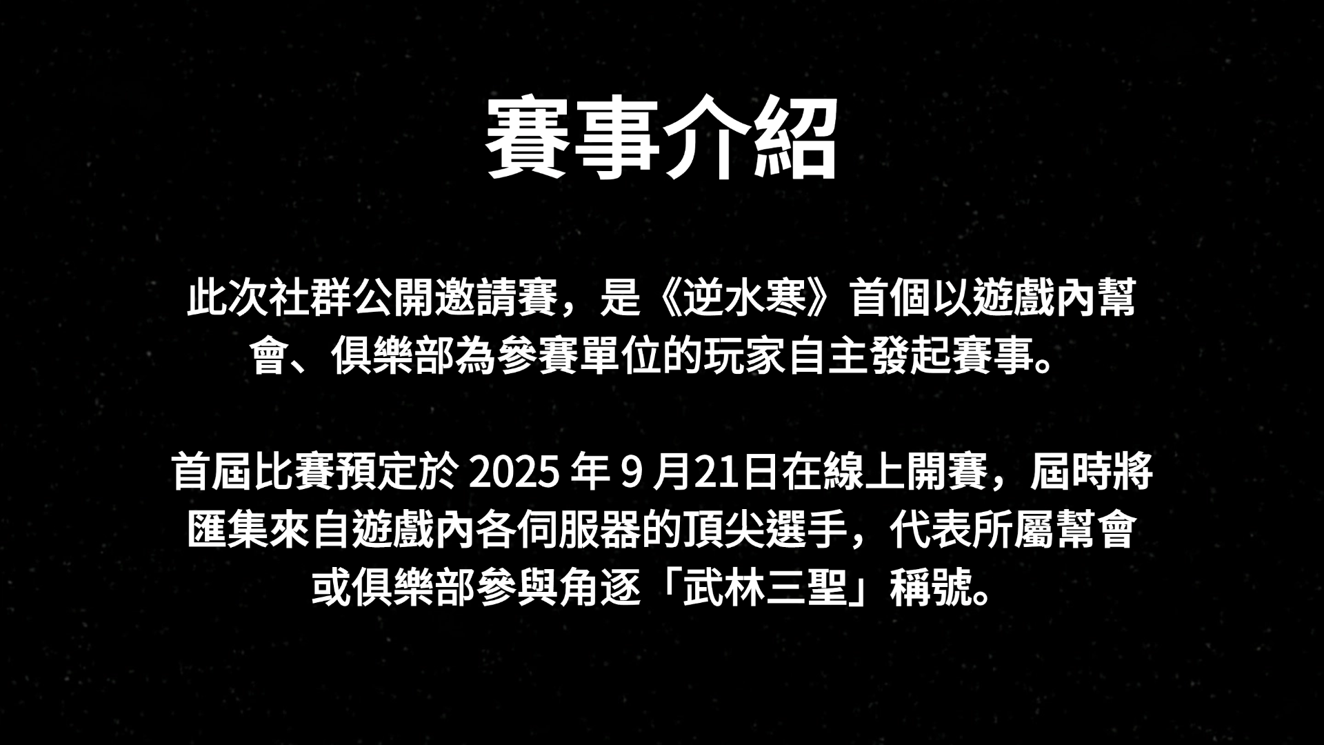 本次公開邀請賽事對外開放,只要是台服逆水寒玩家都可以參與。
