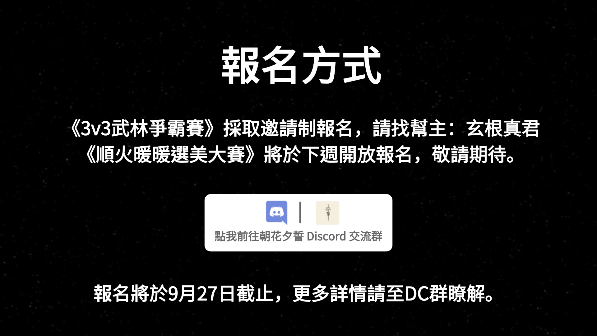 本賽事是由"朝花夕誓"幫會自行舉辦,遵守所有官方的相關規範。